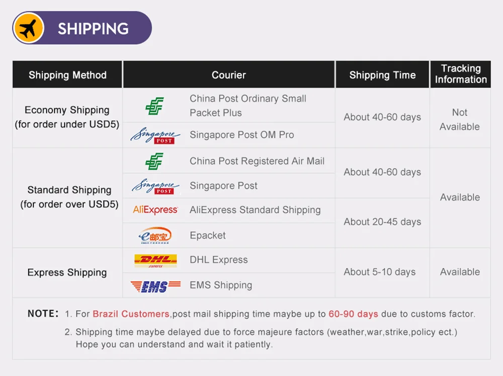 We strive to process and ship all orders in a timely manner, working diligently to ensure that your items are on their way to you as soon as possible.