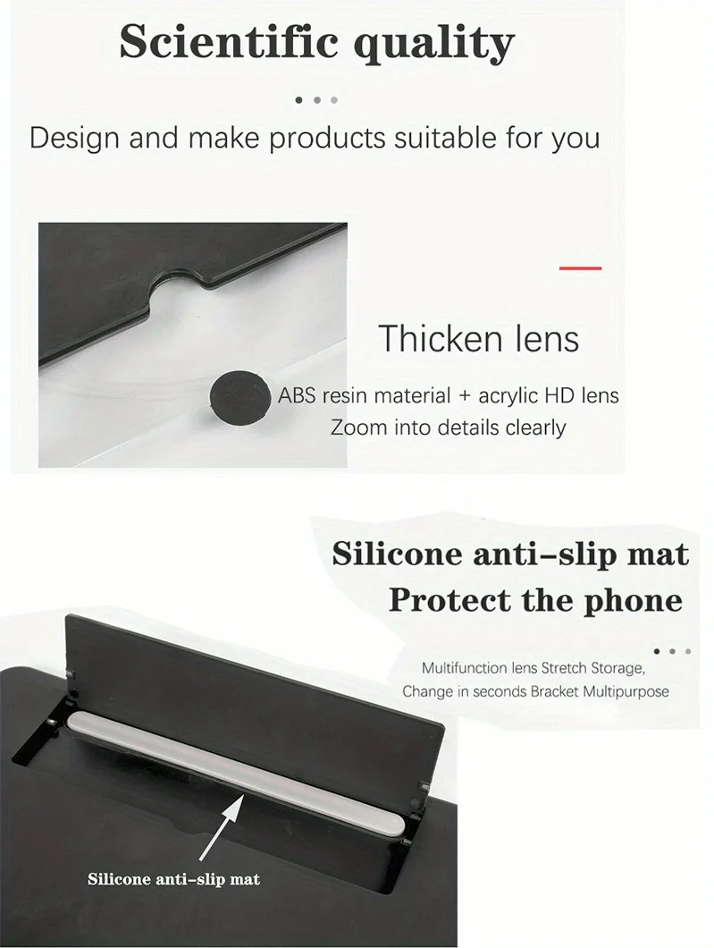 Sturdy, Adjustable & Anti-Slip: Crafted from premium acrylic and ABS plastic, this amplifier is built to last. The adjustable stand lets you find the perfect viewing angle, while the non-slip silicone pad keeps your phone locked securely in place.