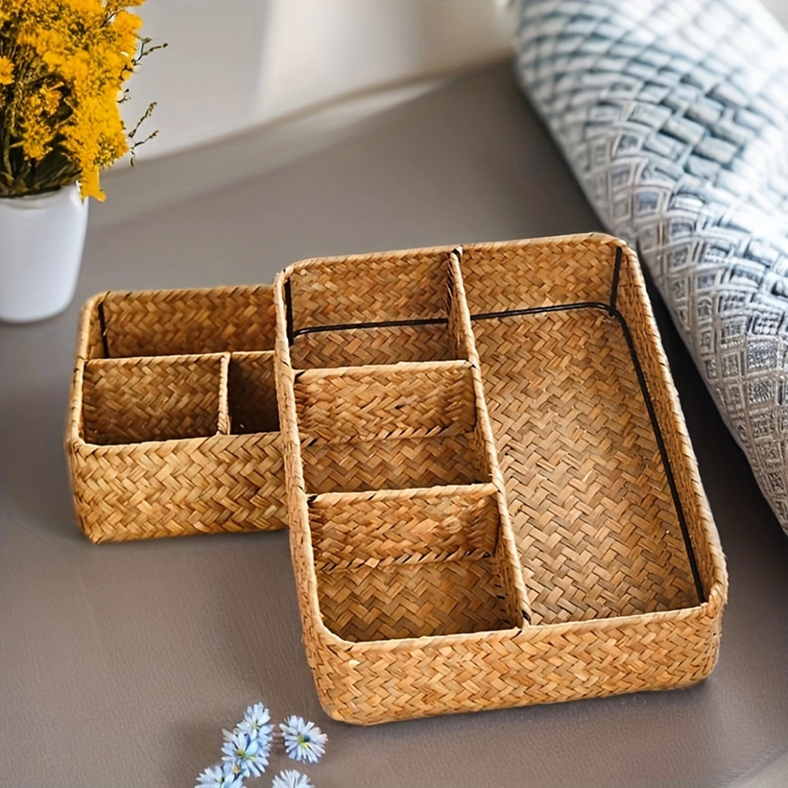 Versatile Organization: Featuring four spacious compartments, this hand-woven storage basket is ideal for organizing snacks, toys, makeup, and jewelry, keeping your space tidy and clutter-free.